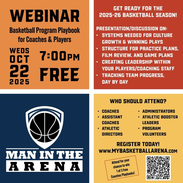 Man In The Arena exists to help improve basketball coaches, players, and teams. While there are almost unlimited resources available to improve basketball skills, technique, and overall Basketball IQ, there are few resources designed to help organize a holistic approach to cultivating a winning culture and enhancing a team’s ability to win by mastering the mental game behind basketball. Man In The Arena focuses less on the Xs and Os, and more on the mental grit, toughness, and tenacity that every team needs to succeed.
